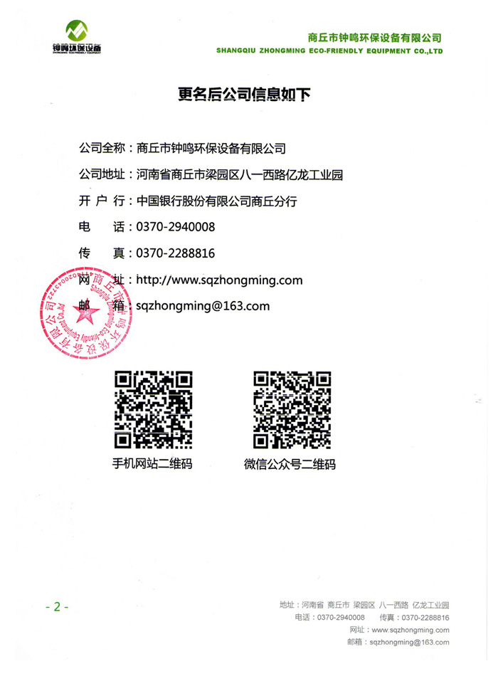 即日起,商丘億龍正式更名為鐘鳴環(huán)保設(shè)備,具體請查看更名公告。